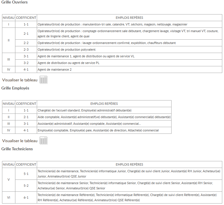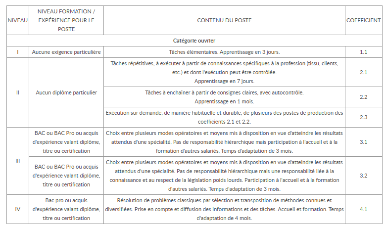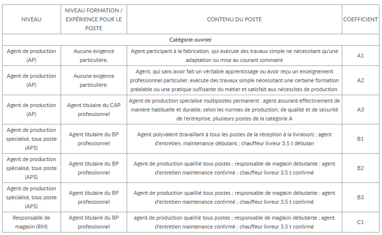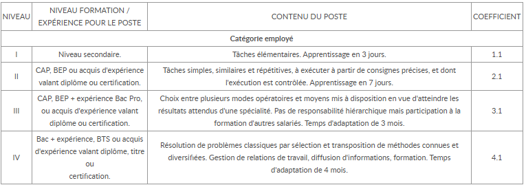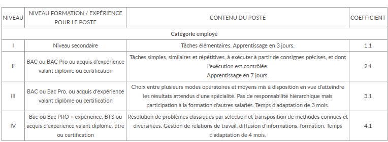 - aux employés : coefficients 1.1 à 4.1 (4 coefficients).